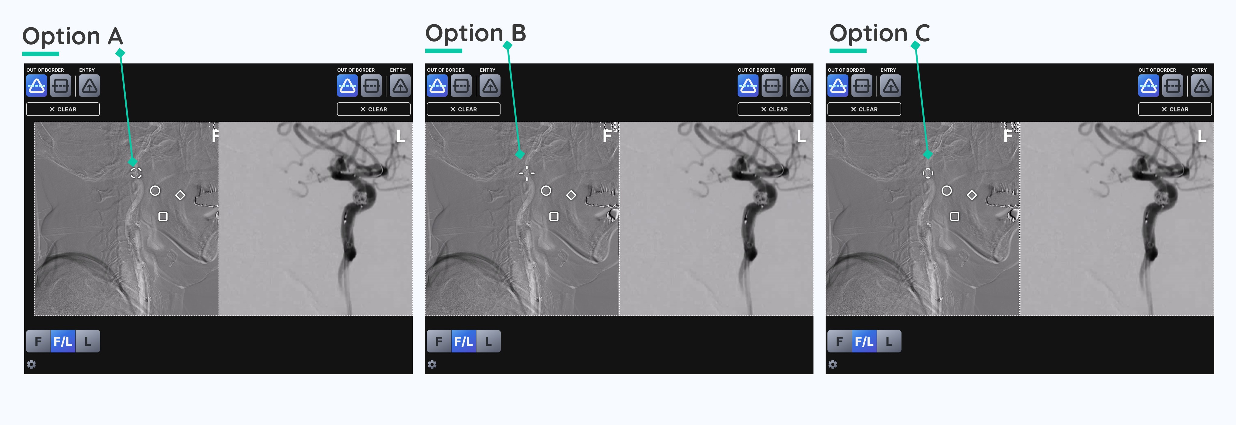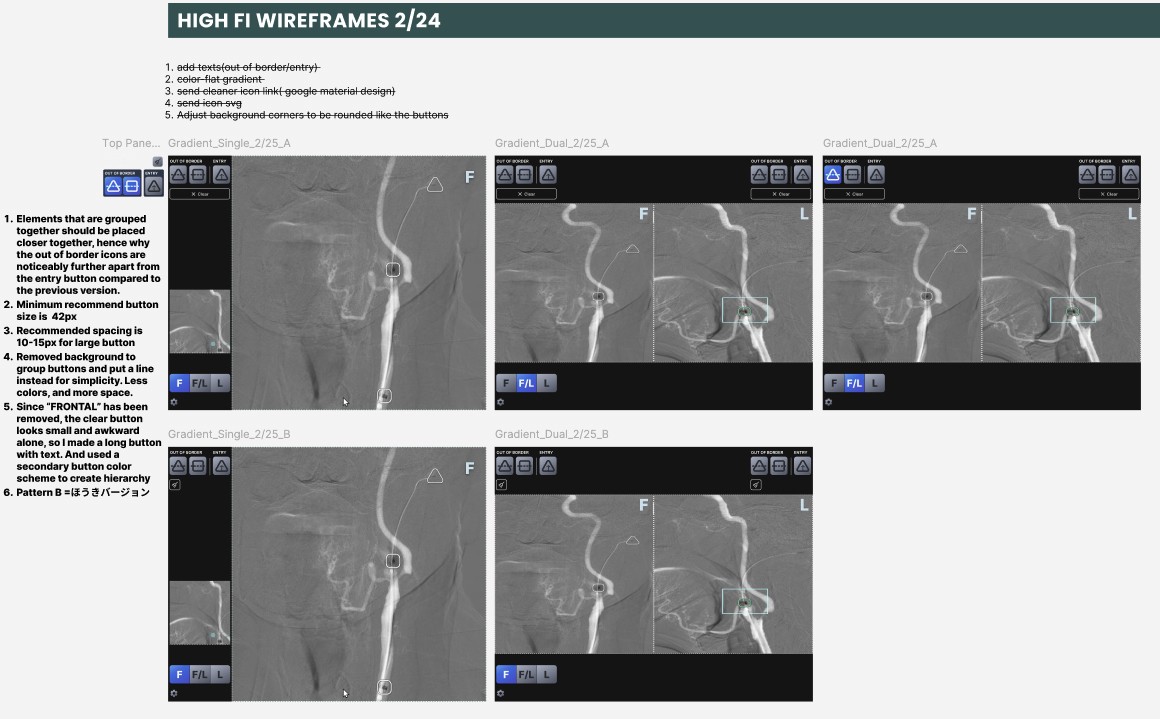 I also redesigned the filter icon, originally a crosshair, to ensure underlying medical imagery remained visible. I proposed several variations, and the client selected a version with increased central spacing to reduce visual obstruction while maintaining positional clarity.