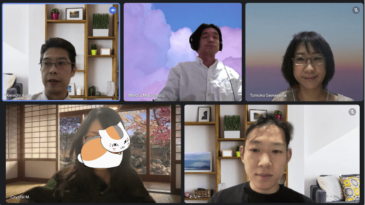 Kickoff meeting participants: CEO and two engineers from iMed Technologies, along with myself and Shinohara-san (advisor) from the nae team.
