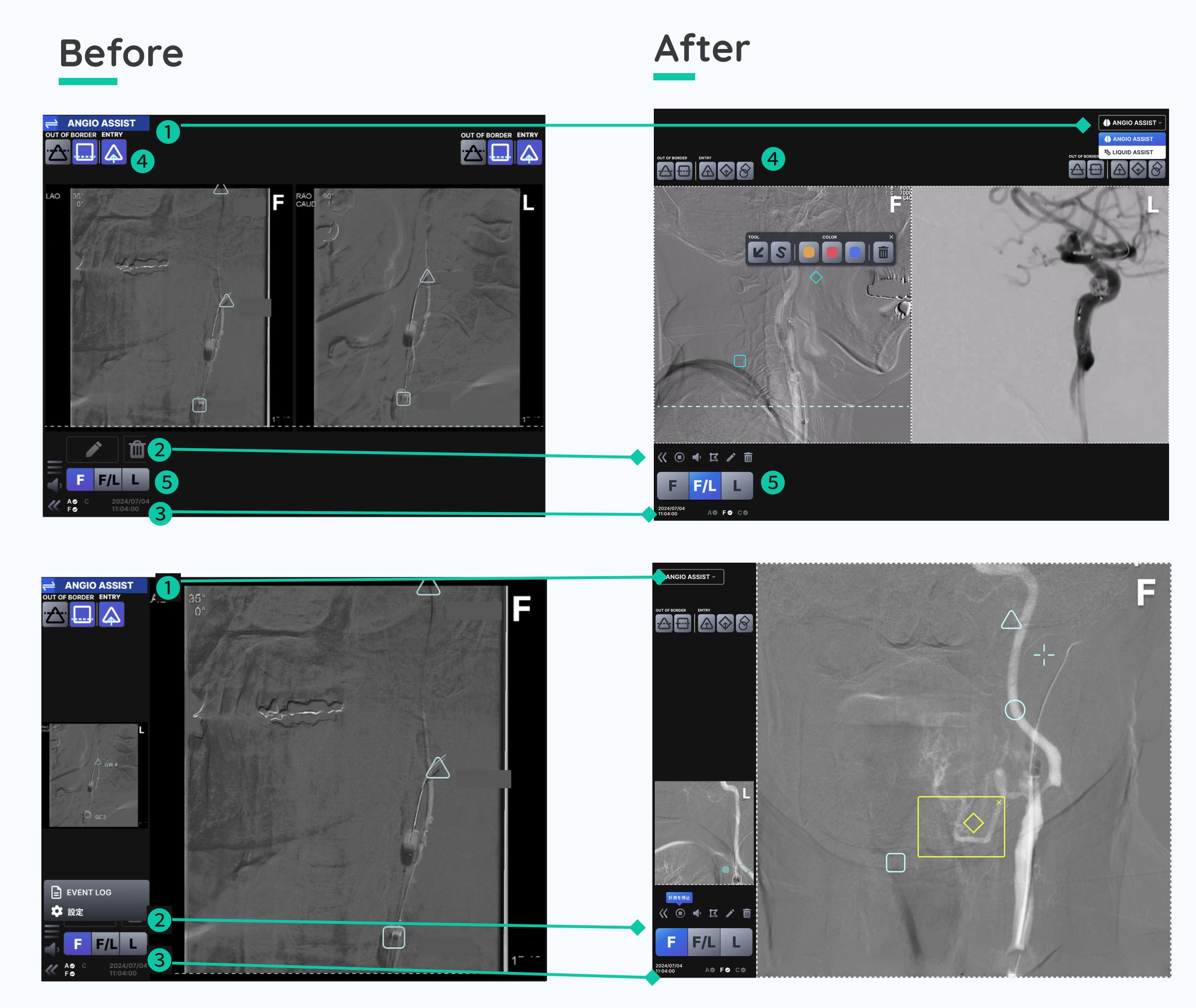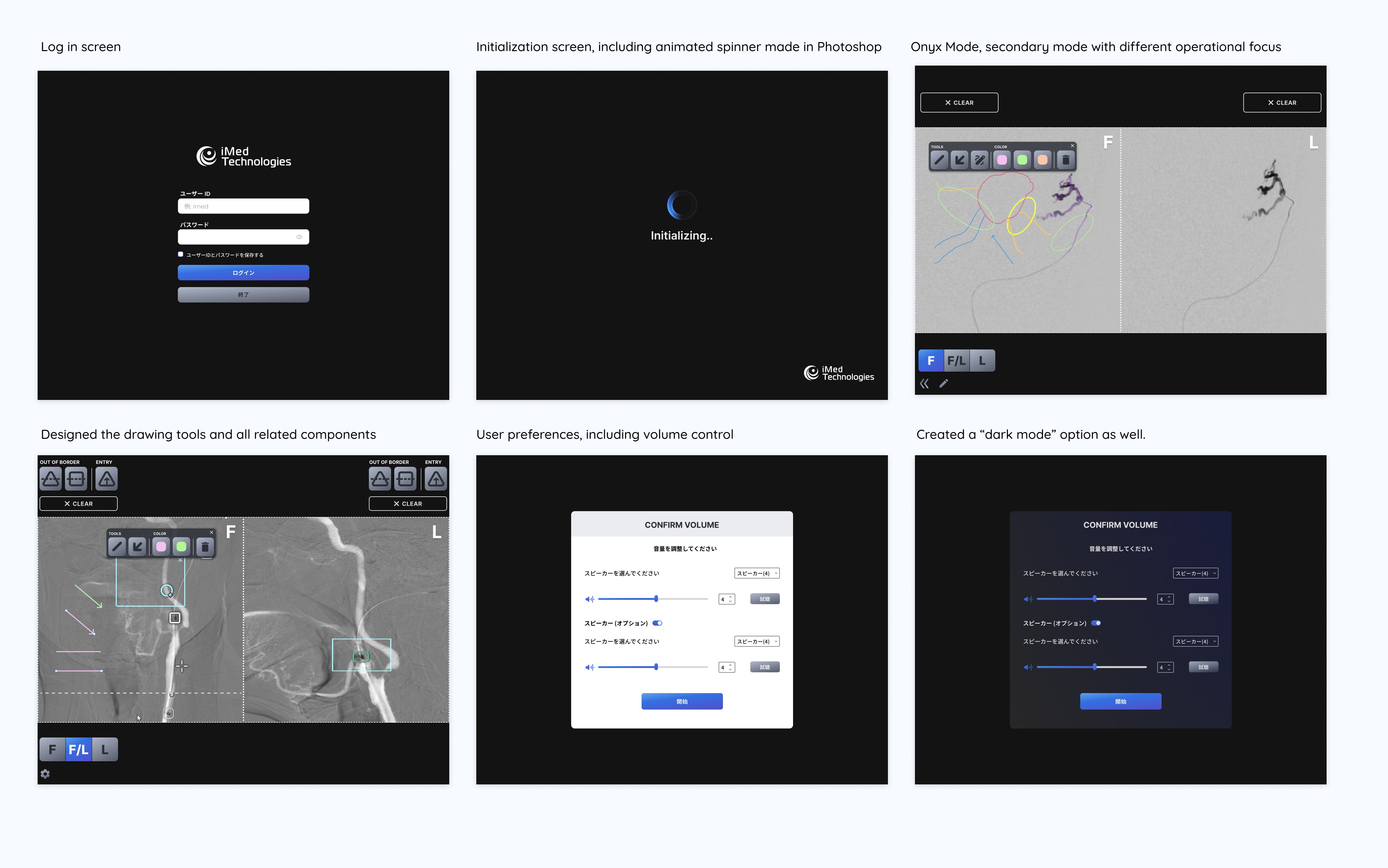Improved usability and clarity of complex imaging workflows, enabling more intuitive interaction for clinical users. Designed and delivered UI enhancements including an updated color system, custom iconography, improved visual hierarchy, and feature-level redesigns. The software is currently implemented in hospitals across Japan.