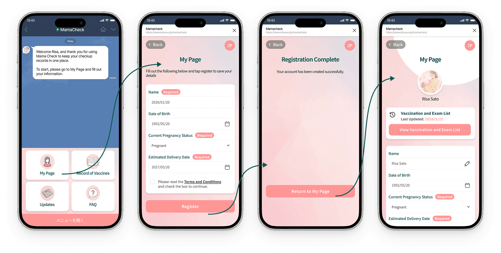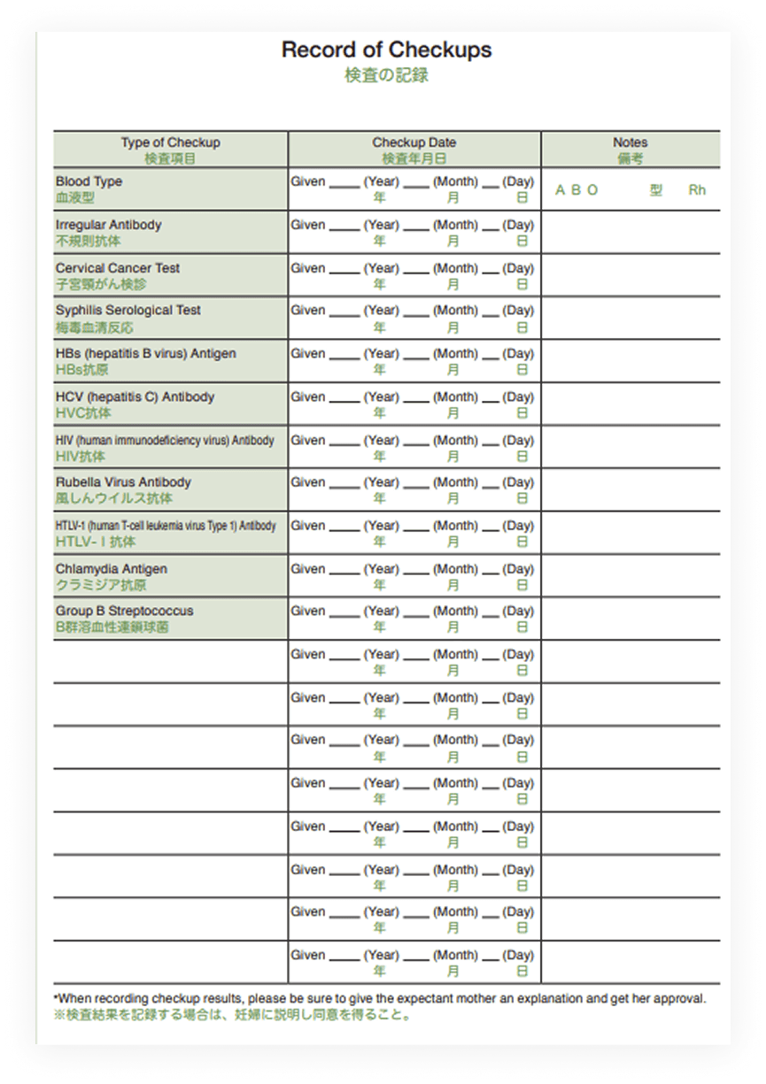 Given that over 99% of expectant mothers in Japan register their pregnancy, the Maternal and Child Health Handbook serves as a key early touchpoint, particularly its widely used “Record of Checkups” section throughout pregnancy.