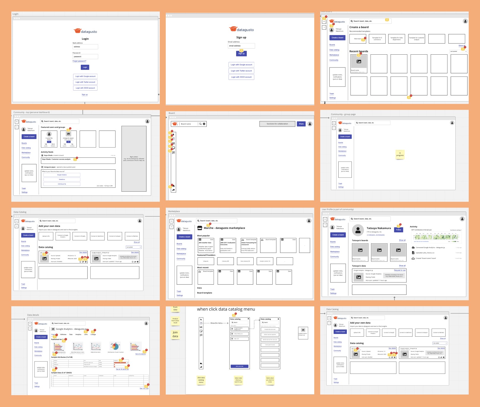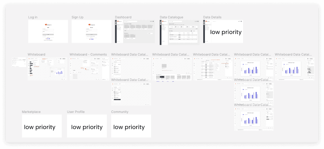 Screenshot of part of the Figma board for Mid-fi screens.