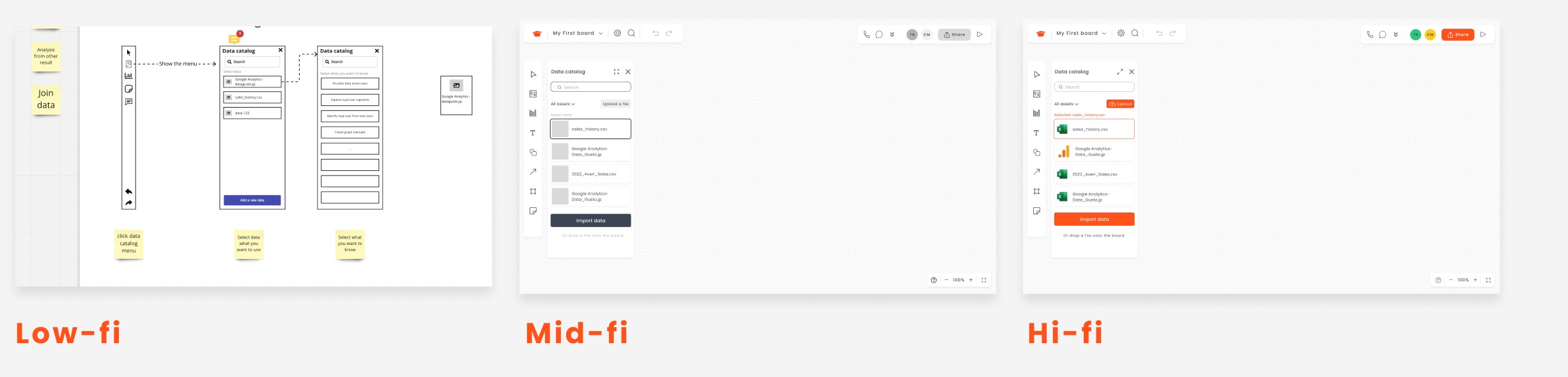 Evolution from low- to mid- to high-fidelity across a single screen.