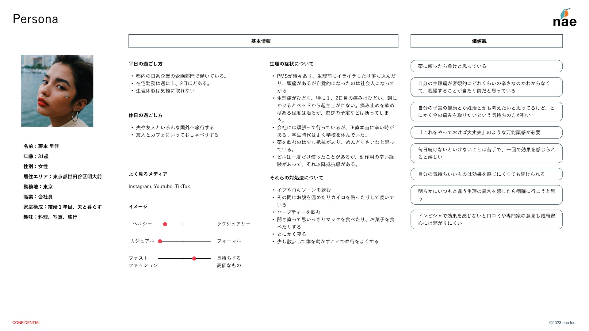 To synthesize the research, my teammate then developed the persona below based on interview findings. A key insight was the need to help users recognize abnormal symptoms and guide them toward seeking medical attention. The persona captures typical period patterns, coping behaviors, and core motivations, providing a clear foundation for design decisions.